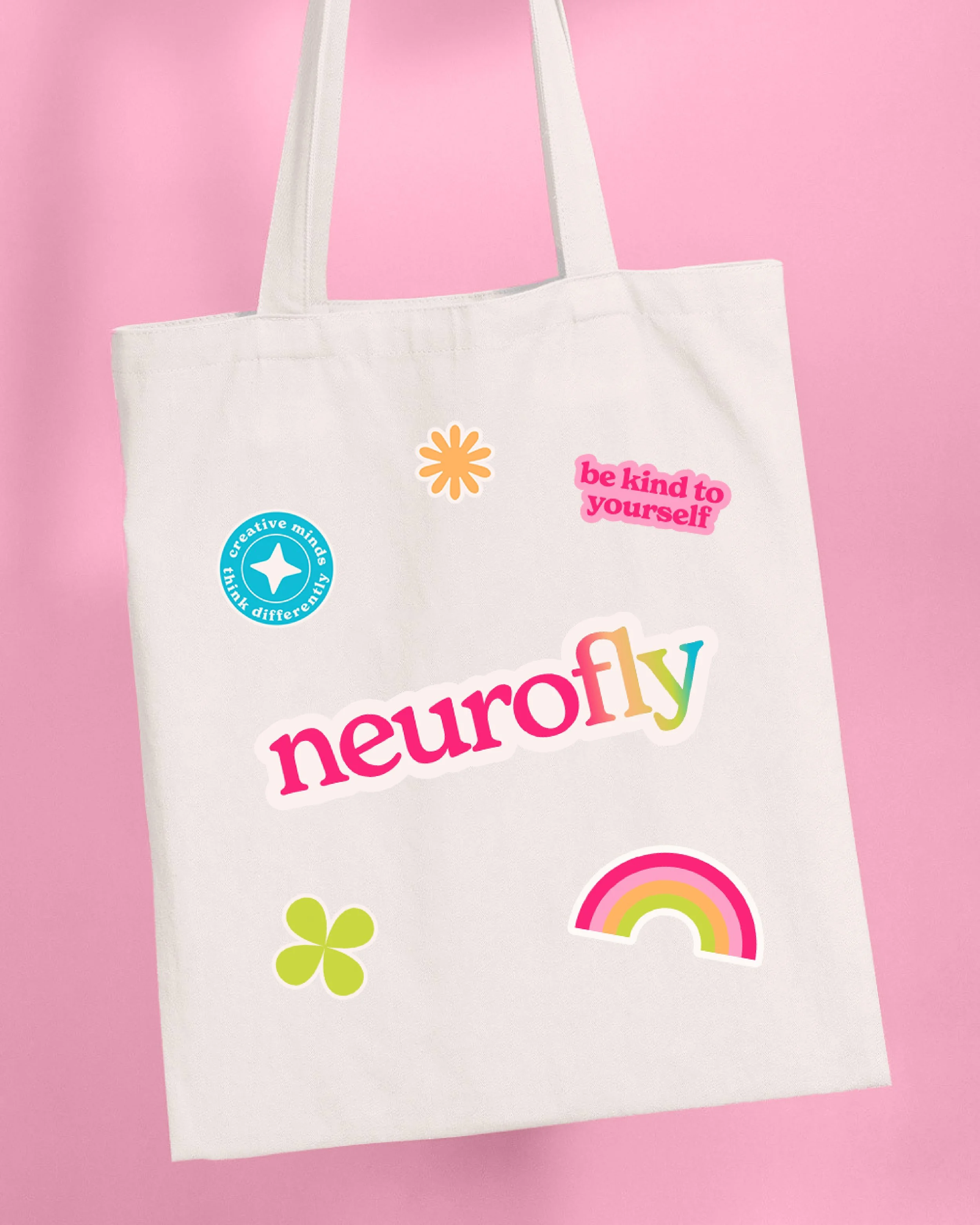 The result is a bold and highly expressive brand identity built around a rainbow colour system, symbolising neurodiversity and inclusion. The logo and visual elements use strong, vibrant colours to create instant recognition and emotional connection. Custom sticker designs were developed to extend the brand language, using a playful but structured visual style. Overall, the identity feels energetic, supportive, and clearly positioned within the ADHD community space.